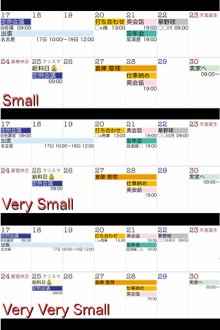 気になるのはやはり字の小ささ(次回のアップデート待ってます!)と、カレンダー毎に色を変えられないことです。